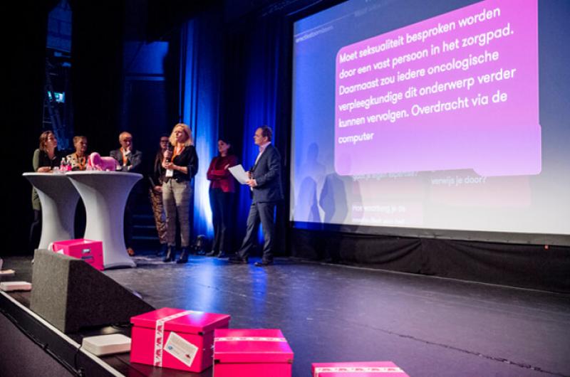Volgens Elzevier kunnen de verpleegkundigen in de zaal een rol spelen om juist op dat moment met patiënten te praten over hun beleving van intimiteit en seksualiteit. En waar nodig met hulp van de Roze Olifant-toolkit. ’’Hoe is het in jouw organisatie geregeld?", vraagt hij de zaal. "Wie praat het beste en het vaakste over het onderwerp met mensen met borstkanker?’’