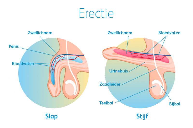 ’’Een erectie ontstaat door een samenspel van zenuwen, gladde spiercellen en bloedvoorziening,’’ legt Reisman uit. De hersenen zijn je belangrijkste seksuele orgaan. Ze geven een signaal aan de zenuwbanen die naar de penis lopen. Op dat moment ontspannen de gladde spiercellen in de zwellichamen in de penis en stroomt er bloed in. ’’Zie het voor je als een spons die ontspant waardoor veel ruimte ontstaat. Die ruimte raakt vervolgens gevuld met bloed. De spons zwelt en zo krijg je een erectie.’’