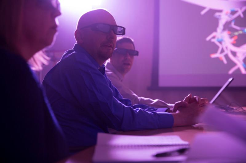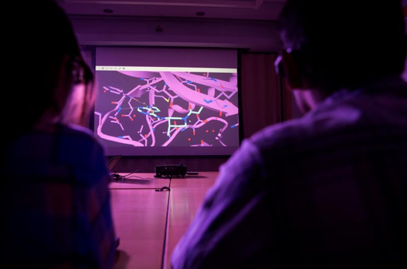 Vervolgens gebruiken Noe en zijn collega’s 3D-techniek om het geheel te kunnen visualiseren. ‘We bekijken het geheel van chemische verbindingen en hoe die ingrijpen op een bepaald eiwit in de vorm van een 3D-film met 3D-brillen.’