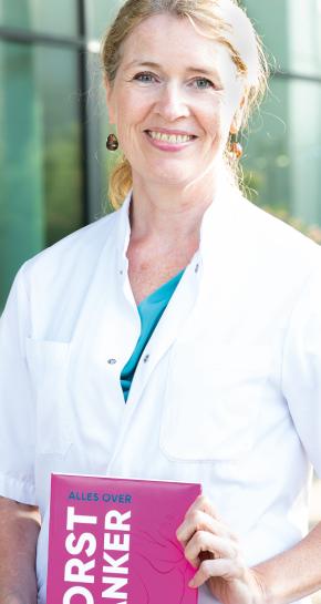 Hester vult aan: “Zij worden met iets geconfronteerd waar ze op dat moment eigenlijk nog niet veel van weten. Dan gaan ze op zoek naar informatie en die informatie is soms best moeilijk op waarde te schatten. Met het boek ‘Alles over borstkanker’ wilden we betrouwbare en goed leesbare informatie bieden aan iedereen met vragen over borstkanker.” Marie-Jeanne en Hester hebben dit boek geschreven samen met 27 andere specialisten van het Antoni van Leeuwenhoek en in nauwe samenwerking met de Borstkankervereniging Nederland.