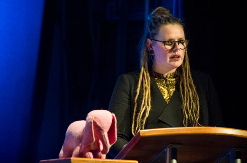 Elzevier vertelt de zaal dat patiënten na hun behandeling, door een veranderd lichaam en zelfbeeld en andere beleving van seksualiteit en intimiteit, zoeken naar een ‘nieuwe ik’. En met hun partner naar een ‘nieuwe wij’.
