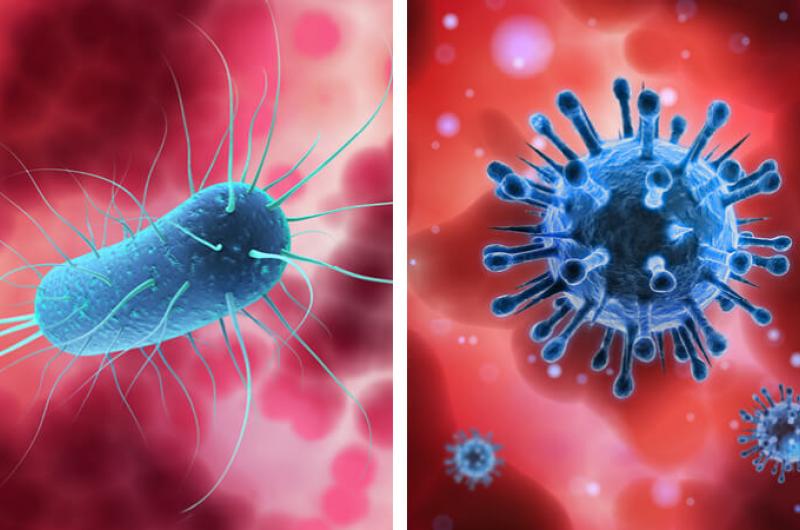 De zogenoemde microbiota zijn onschadelijk en hebben we nodig voor onze stofwisseling en afweer. Er zijn ook slechte bacteriën die ziekten kunnen veroorzaken, waaronder huidinfecties, diarree, luchtweginfecties en hersenvliesontsteking. Meestal kunnen tegen ziekten veroorzaakt door bacteriën, antibiotica worden gebruikt. Al kunnen bacteriën daar ook ongevoelig (resistent) voor worden. Virussen, infectieuze micro-deeltjes, kunnen ook allerlei ziekten veroorzaken. Sommige veroorzaken relatief milde ziekten, als een verkoudheid of een griep. Ernstige ziekten als SARS en hepatitis worden ook door virussen veroorzaakt. Virale infecties kunnen niet worden behandeld met antibiotica. Je kunt ze wel bestrijden met vaccinaties en antivirale medicijnen.