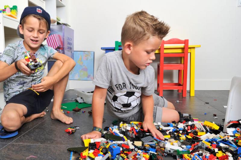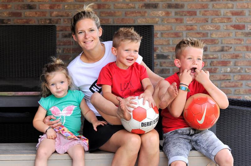 Daan (6) is aan het voetballen met zijn vriendje Lenn (6) in de tuin van vriendin Maartje. Lenn heeft net als Daan hemofilie. ’’We hebben elkaar vlak na de diagnose van Lenn leren kennen,’’ vertelt Mariël. ’’Een vrouw hier uit Someren kende ons allebei en heeft ons aan elkaar voorgesteld. Het klikte meteen enorm.’’