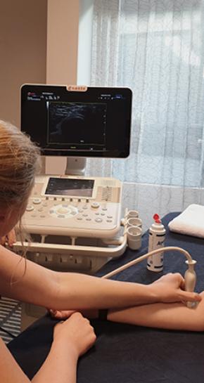 Merel Timmer heeft in Canada een cursus gevolgd over echografie en spieren. ’’Als spieren diep liggen, kun je niet altijd van buitenaf bepalen of dat er sprake is van een spierbloeding.’’