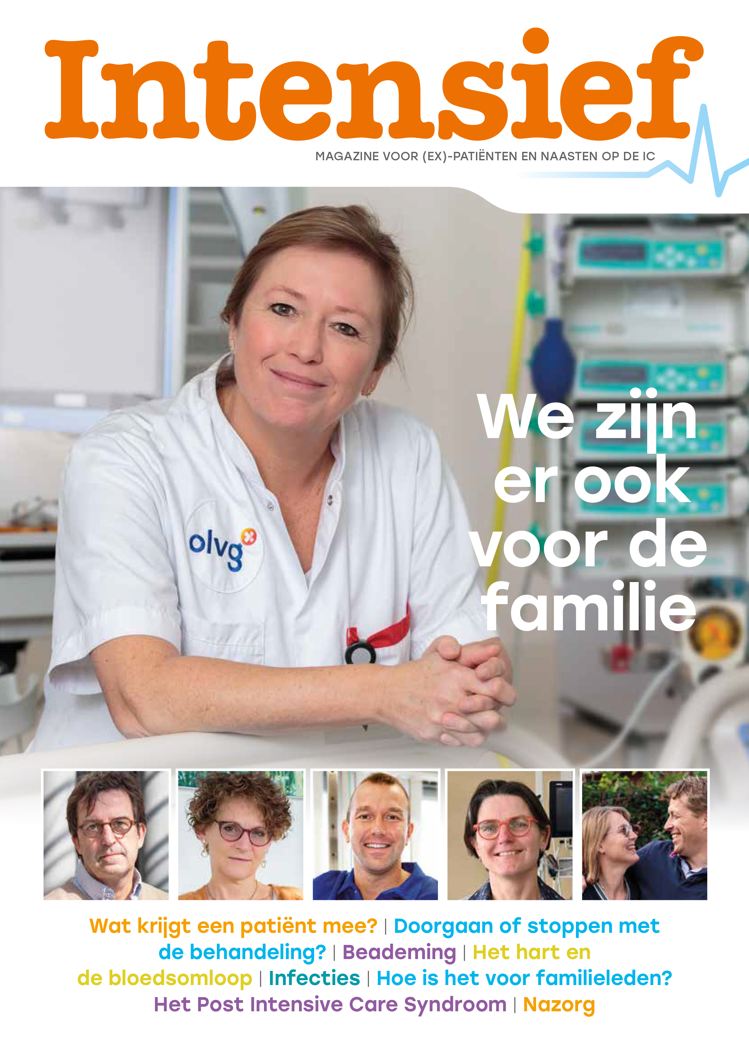 Als mensen op de Intensive Care belanden zijn ze zeer ernstig ziek. Zij en hun naasten beleven dan een emotioneel zeer intensieve periode. Er komt tijdens het verblijf op de IC ook heel wat op de familie en naasten af. Terwijl patiënten vaak een hele periode van hun verblijf op de IC niet of nauwelijks meemaken. Precies daarom is het magazine Intensief gemaakt, bedoeld voor (ex)patiënten van de IC en hun familie en naasten.