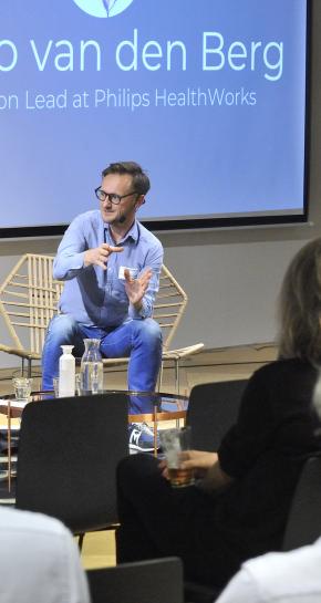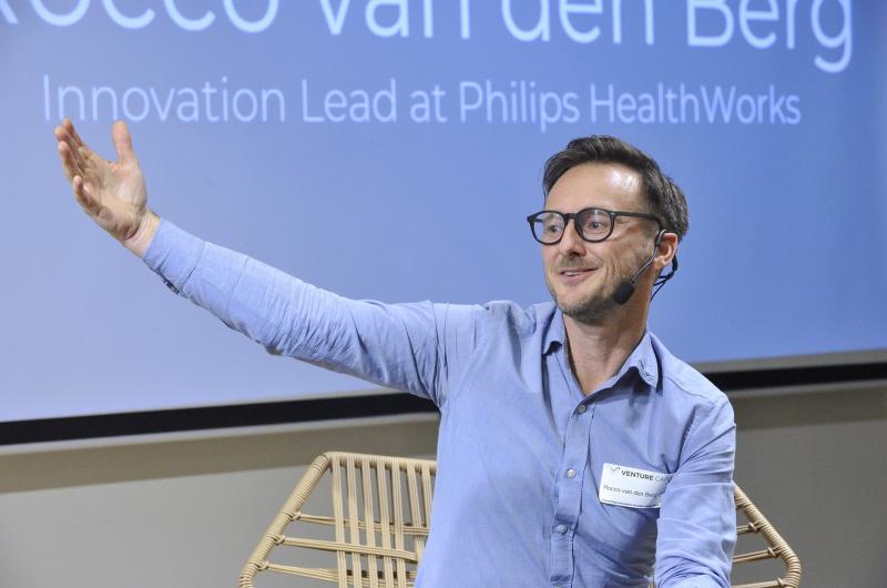 29 november 2018 - Rocco van den Berg is innovation lead bij Philips Healthworks, een programma voor beginnende bedrijfjes. ’’Het idee was om een ecosysteem van startups te creëren. We begonnen met drie bedrijfjes en steunen er nu vijftig. We kennen elkaar, vertrouwen elkaar en als het moment daar is, financieren we ze of we gaan we samen verder.’’