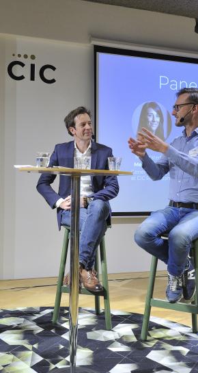 Hij houdt het publiek van het Venture Café voor dat slechts twintig procent van de startups uiteindelijk succesvol is.
