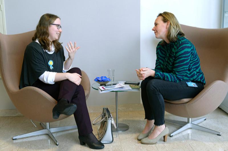 Studente Joyce bijt het spits af. Zij werd gekoppeld aan Hendrien van de Pfizerdivisie zeldzame ziekten. Volgens Hendrien is Joyce een ‘enorme doorzetter’. Door haar is ze meer gaan beseffen hoe het is om chronisch ziek te zijn en met een lichaam te leven dat niet altijd meewil. ’’Hoe je energie moet managen en jezelf moet pushen om jezelf te oefenen, te trainen, je studie te halen, tussendoor te werken. Dan ben je wat mij betreft al een kanjer.’’
