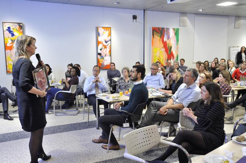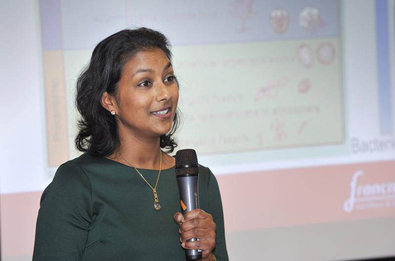 Sunita Paltansing art-microbioloog van het Sint Franciscus Gasthuis en Vlietland neemt het publiek van de lunch- en learnsessie tot slot mee in een verhaal over de geschiedenis van antibiotica en antibioticaresistentie.