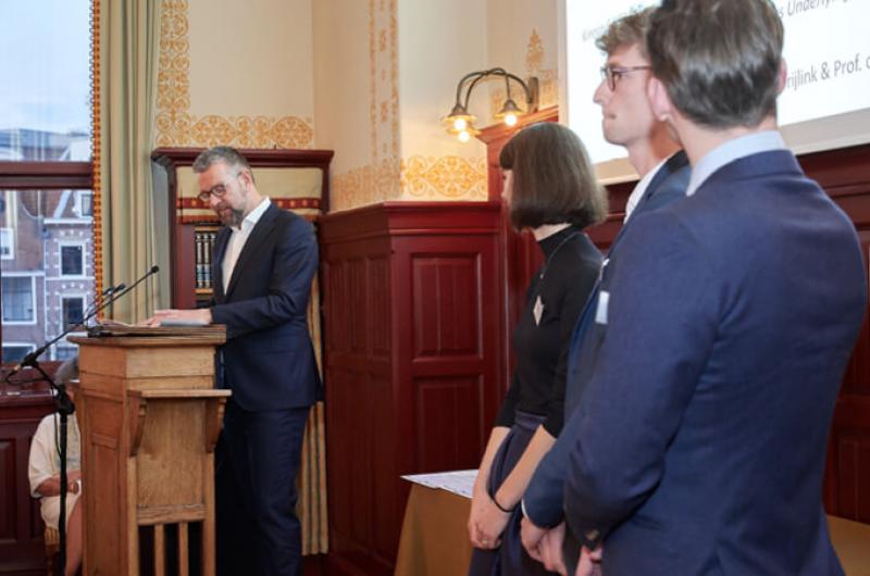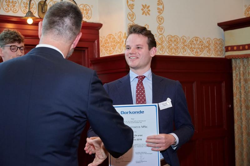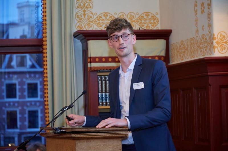 De eerste prijs ging naar Max Trauernicht (24 jaar). Met het gewonnen geldbedrag van 3.000 euro zou Max eigenlijk het liefst drie maanden lang op vakantie willen gaan, maar hij is net begonnen aan zijn promoveertraject. “Een kleine vakantie kan altijd nog”, zegt hij met een lach. “Daarna moet ik alleen wel weer verder.”