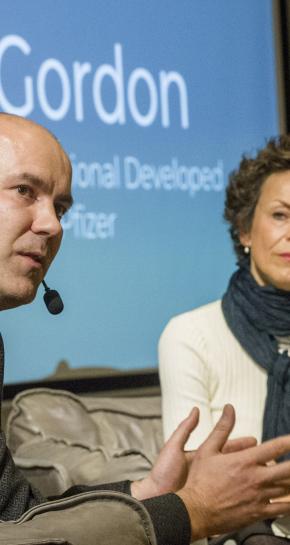 Om de impact op patiëntenzorg te maximaliseren, wil Pfizer graag in contact komen en samenwerken met startups. Zo vertelde Gordon tijdens de eerste van vijf Venture Café-bijeenkomsten over ‘Health, Health, Wellbeing & Food’ central.’
