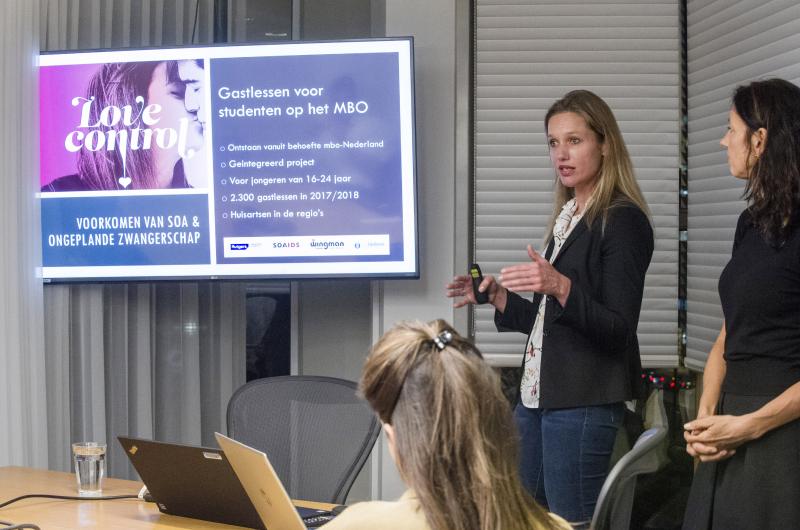 Judith van der Pijl, productmanager van Pfizer en Tanja Maathuis, algemeen manager van communicatie- en educatiebureau Remedica, vertelden bezoekers van het Venture Café, over alle ins- en outs van het lesproject. Love Control was daarmee één van de vijf 'Pfizer Talks-sessies' over ‘Life Sciences & Health’.