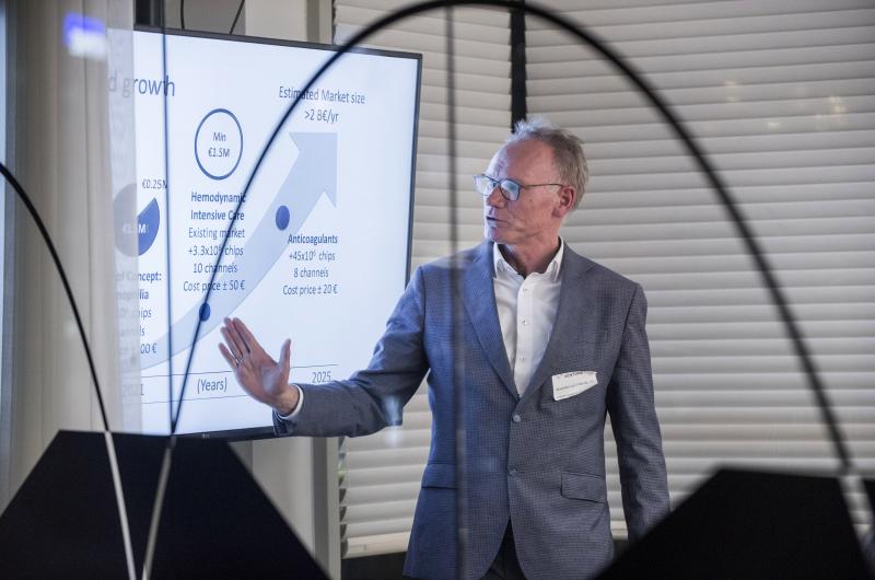 Waander van Heerde denkt dat het lab-op-een-chip tot een enorme kostenbesparing kan leiden in de zorg. ’’In Nederland zijn er 1500 hemofiliepatiënten die per persoon jaarlijks 250.000 euro aan behandelkosten kosten.